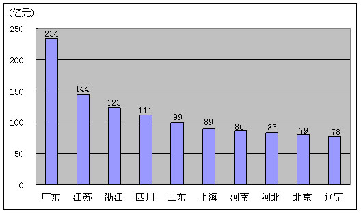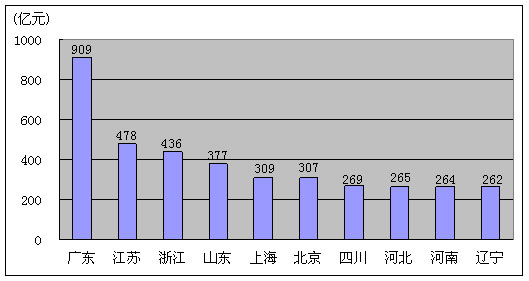 图14. 2009年9月移动电话用户排名前十名的省份
