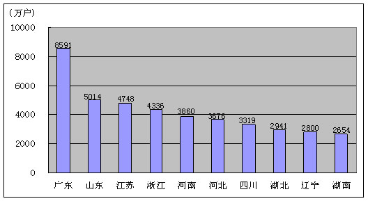 图13. 2009年9月固定电话用户排名前十名的省份