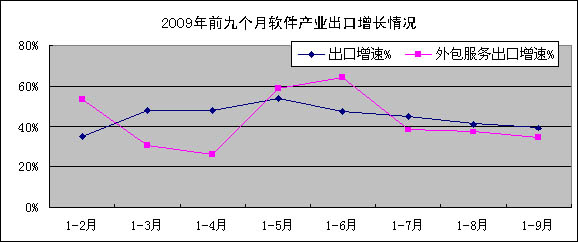 1-9月,我国软件出口124.6亿美元,同比增长39.4%,增幅比去年同期低16.4个百分点,比1-8月下降1.6个百分点;其中软件外包服务出口15.6亿美元,同比增长34.2%,低于去年同期16个百分点,比1-8月下降2.9个百分点。