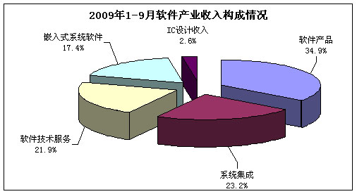 2009年1-9月,在国际金融危机继续蔓延深化的影响下,我国软件产业的收入增速持续回落,产业结构不断调整。主要特点如下: