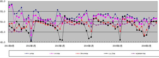 2016年5月,日本a片 制造业采购经理指数(重点企业PMI)为50.7,较上月上升0.1个百分点(见图1);5项权重指数中,生产量指数、原材料库存指数较上月下降,新订单指数与上月持平,从业人员指数和配送时间指数较上月回升(见图2)。