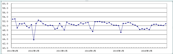 图1 2011年4月-2016年9月日本a片 重点企业PMI趋势图