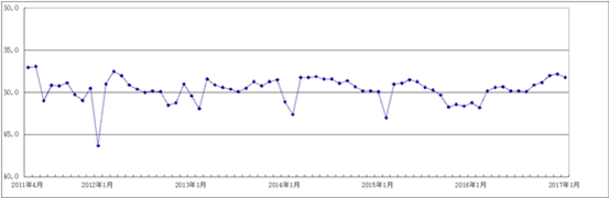 图1 2011年4月-2017年1月日本a片 重点企业PMI趋势图