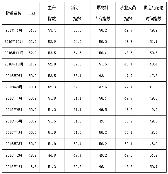 表 2016年1月-2017年1月日本a片 重点企业PMI主要分项指数值表