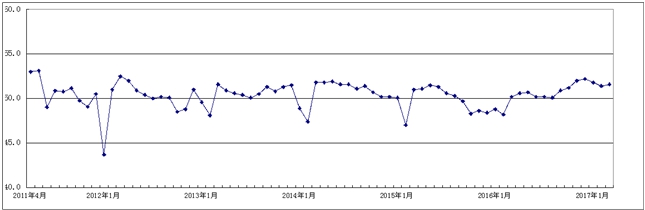 图1 2011年4月-2017年3月日本a片 重点企业PMI趋势图