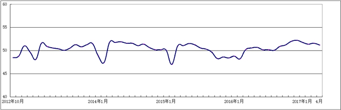 图1 2012年10月-2017年4月日本a片 重点企业PMI趋势图