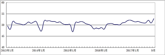 图1 2013年1月-2017年9月日本a片 制造业PMI趋势图